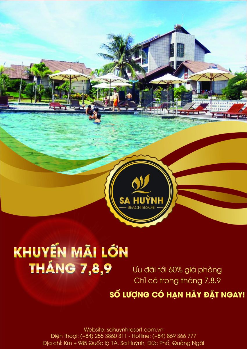Trong không khí rạo rực của mùa du lịch biển, Sa Huynh Beach Resort xin gửi tới Quý khách hàng chương trình khuyến mãi lớn tháng 6 và gói “Combo Siêu tiết kiệm”.